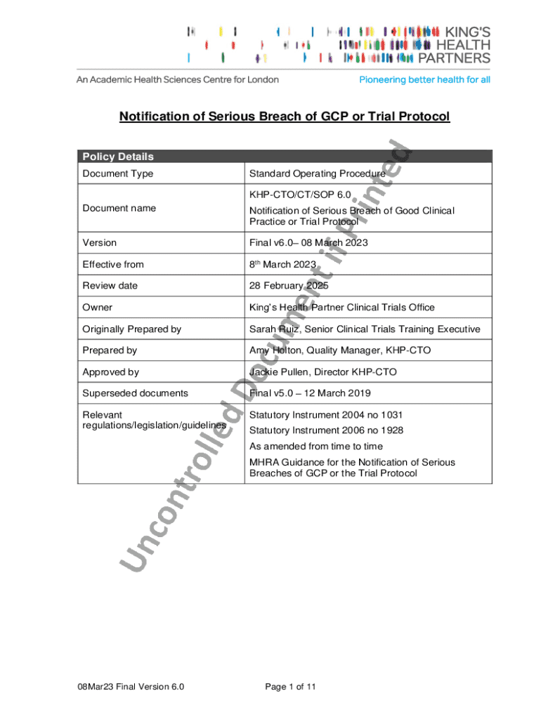 Get the free Notification of Serious Breach of Good Clinical Practice or Trial Protocol