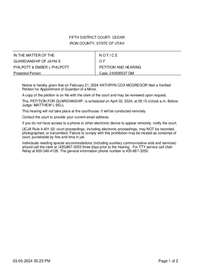 Get the free Notice of Guardianship Petition