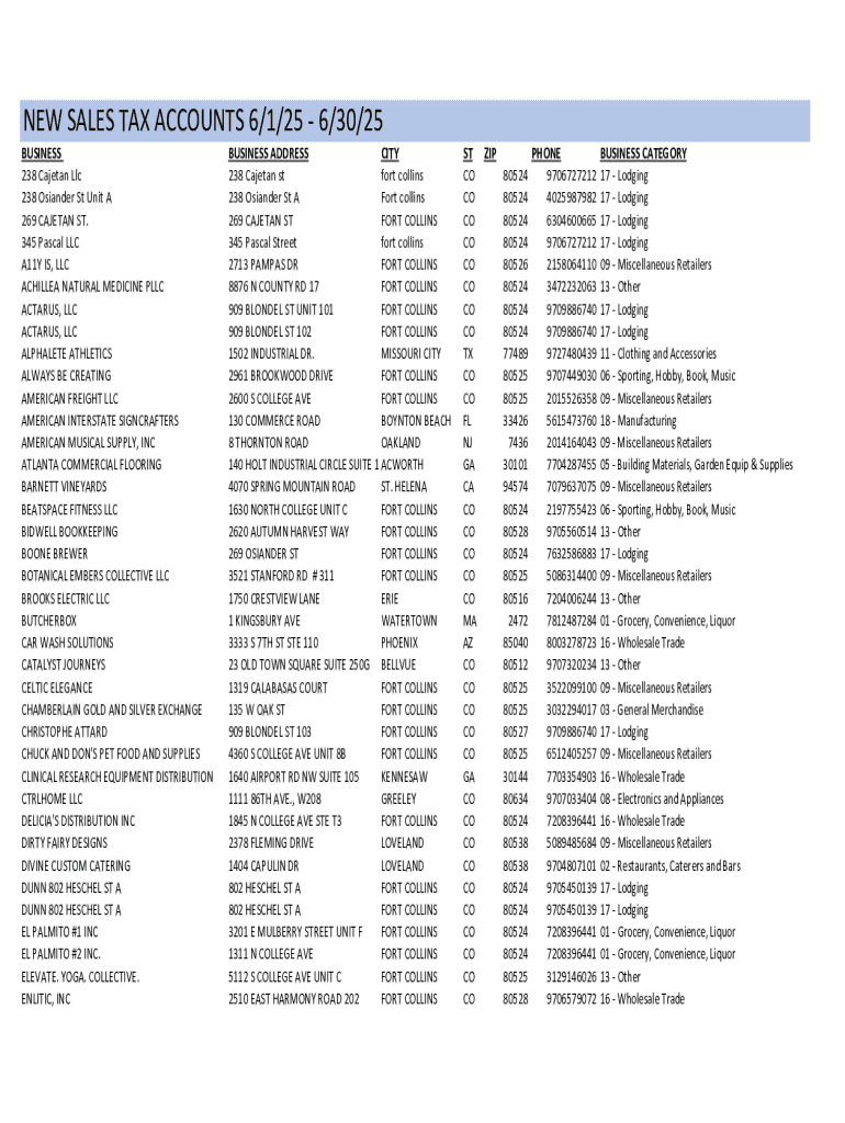 Get the free NEW SALES TAX ACCOUNTS 6/1/25 - 6/30/25