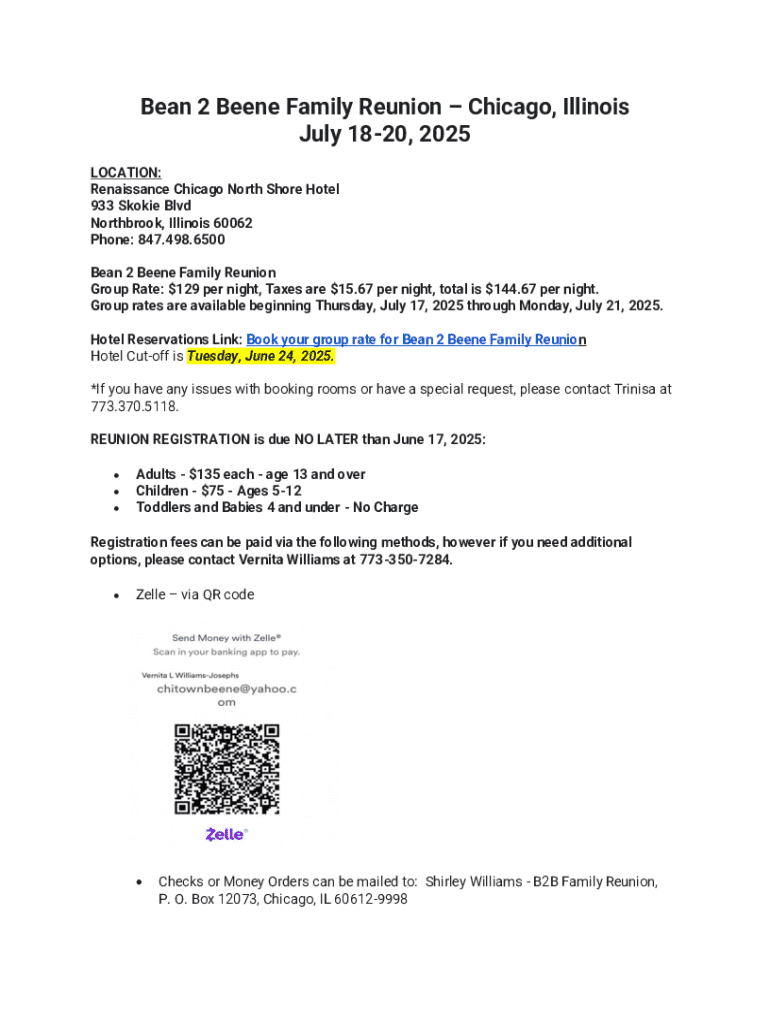 Get the free Bean 2 Beene Family Reunion Registration Form