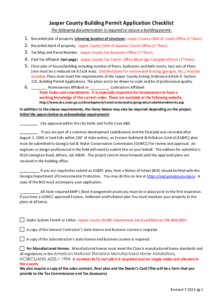 Get the free Jasper County Building Permit Application Checklist