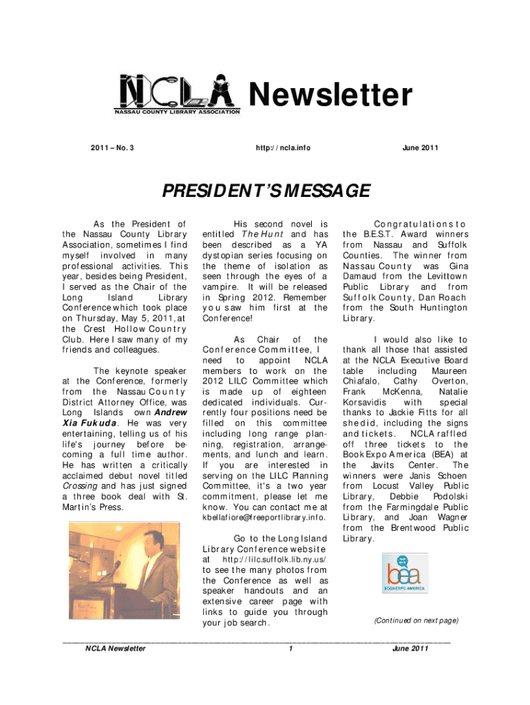 How to fill out ncla newsletter
