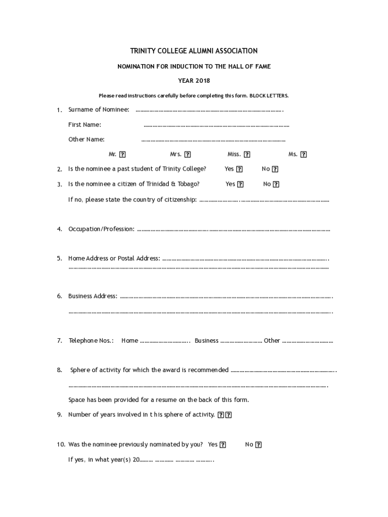 Get the free Nomination for Induction to the Hall of Fame