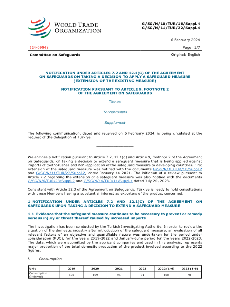 Get the free notification under articles 7.2 and 12.1(c) of the agreement