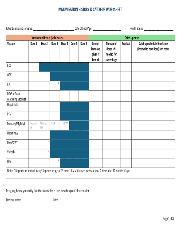 Get the free Immunisation History & Catch-up Worksheet