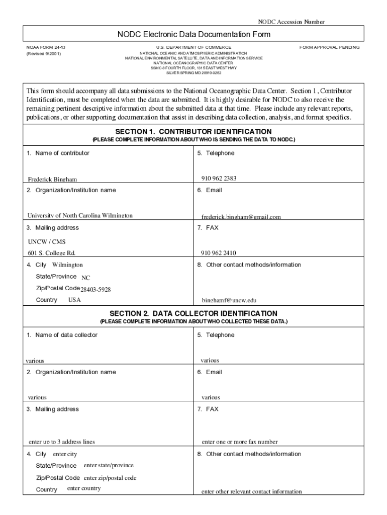 Get the free Nodc Electronic Data Documentation Form