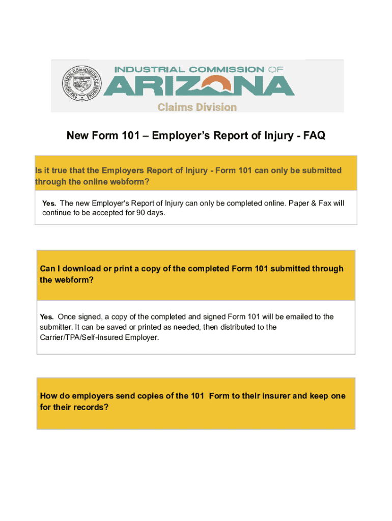 Get the free New Form 101 – Employer’s Report of Injury - Faq