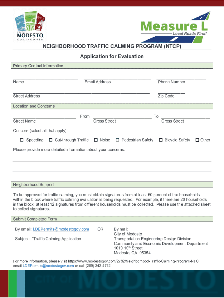 Common concerns about the neighborhood traffic calming program form often revolve around the proper completion and effectiveness of proposals. Many individuals wonder how to gather adequate community support or what kind of evidence to submit with their application. This guide emphasizes the importance of clear descriptions of traffic problems and actionable solutions.