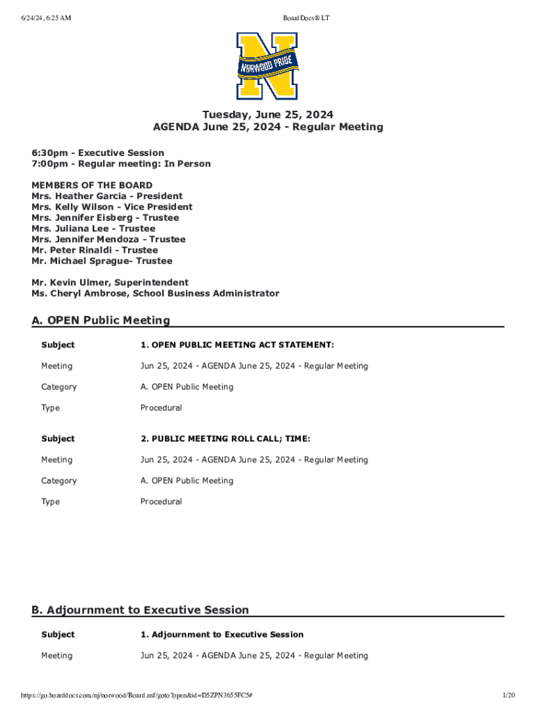 Get the free Featured - Norwood Public School District NJ BoardDocs LT