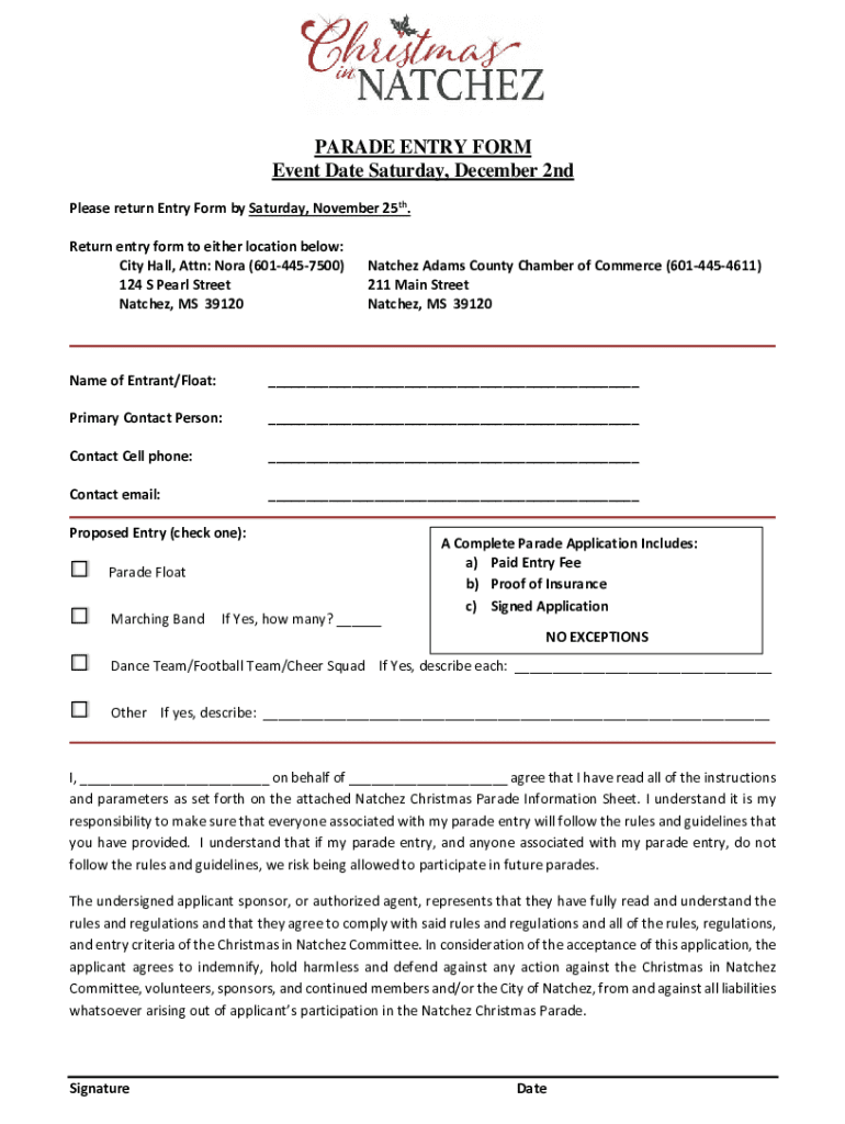 Natchez Christmas Parade Information Form: Your Complete Guide