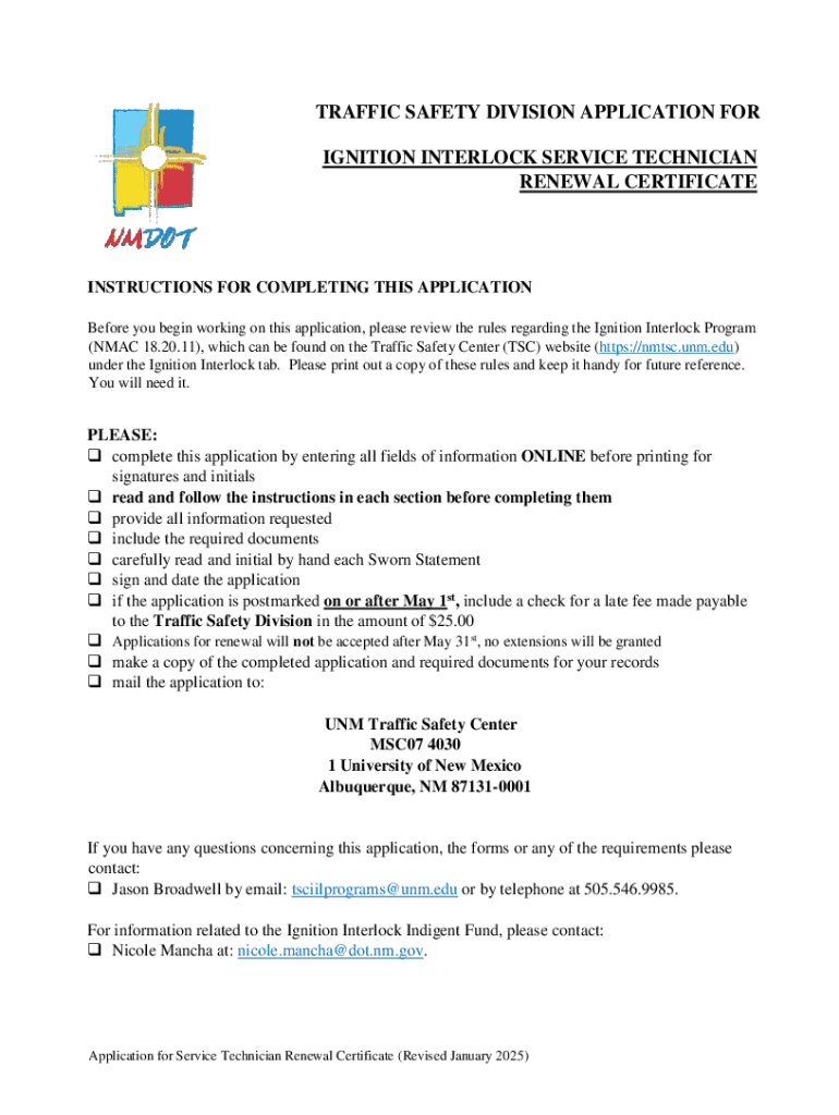 Get the free Application for Ignition Interlock Service Technician Renewal Certificate