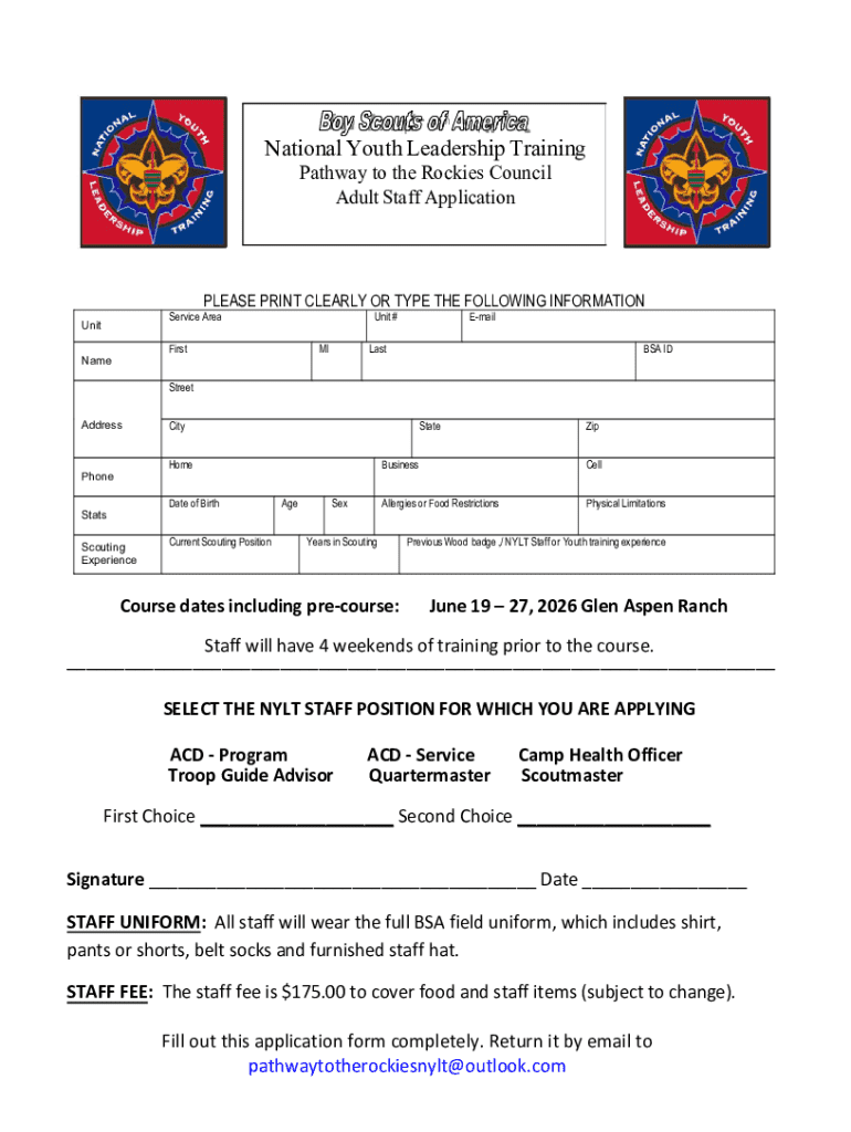 Get the free National Youth Leadership Training Adult Staff Application