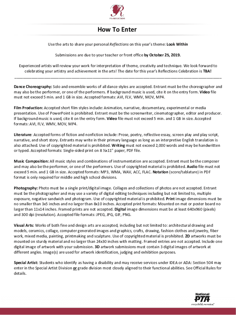 To embark on a successful journey in the National PTA Reflections Program, understanding eligibility and preparation is essential. Students must be enrolled in a school participating in the program, which is typically organized by local PTAs. Families are encouraged to get involved, as parental support can inspire students to channel their creativity into meaningful artworks.
