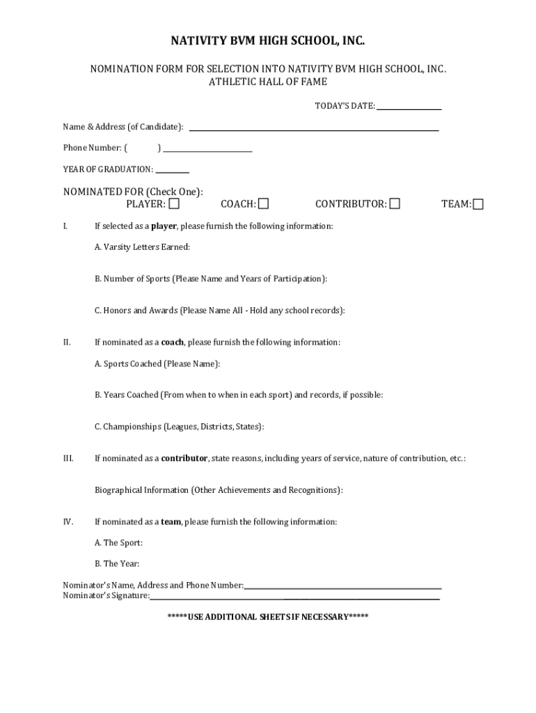 Get the free Nomination Form for Selection Into Nativity Bvm High School, Inc. Athletic Hall of Fame