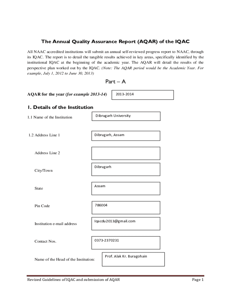 Get the free Annual Quality Assurance Report (aqar) of Dibrugarh University