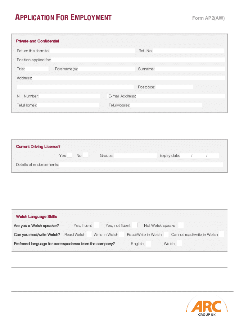 This document is an application form for employment which requires personal information, employment history, education details, and references from the applicant.