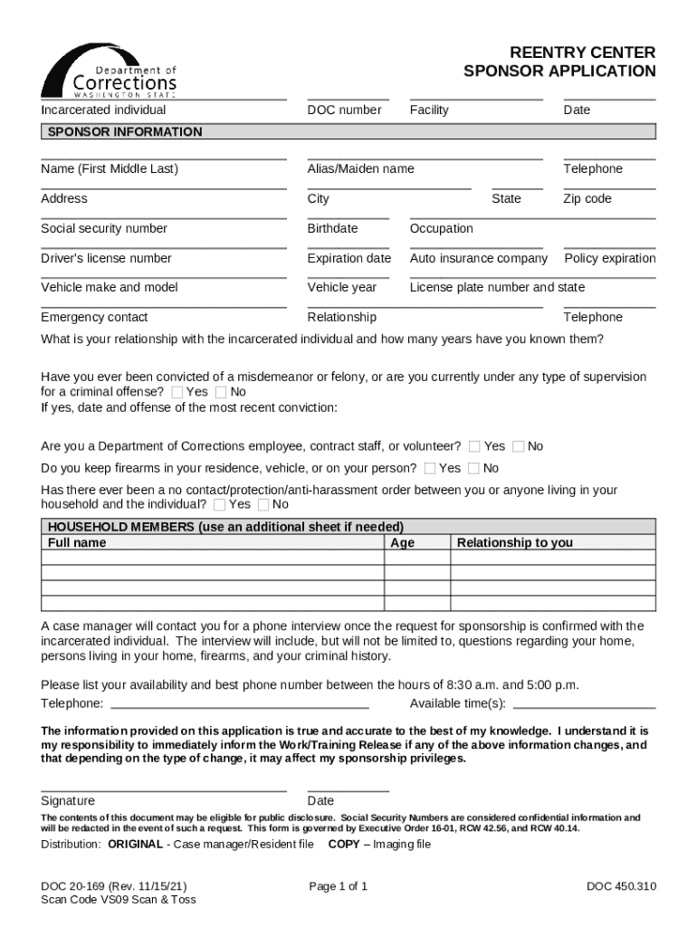 A well-structured reentry center sponsor application form typically consists of several key components that gather necessary information from the sponsor. These sections allow for a thorough assessment of the applicant's qualifications.