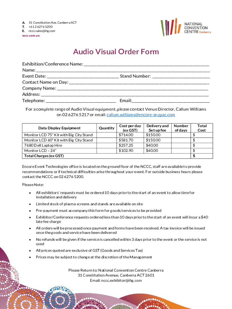 Get the free Audio Visual Order Form