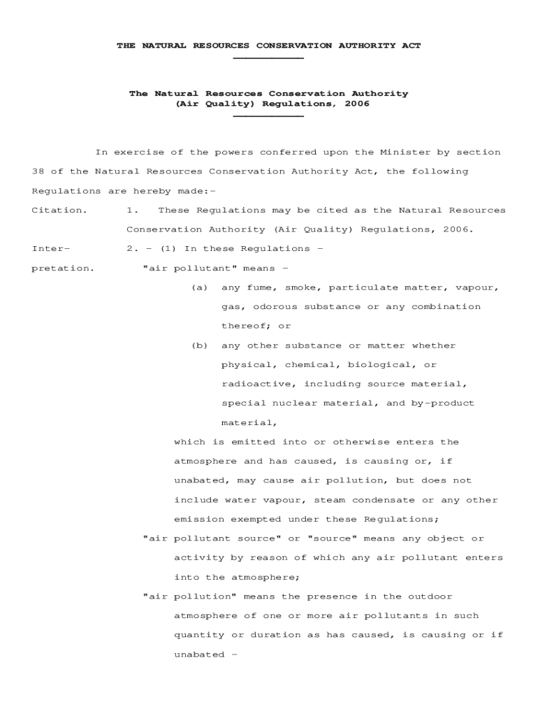 Get the free Natural Resources Conservation Authority (air Quality) Regulations, 2006