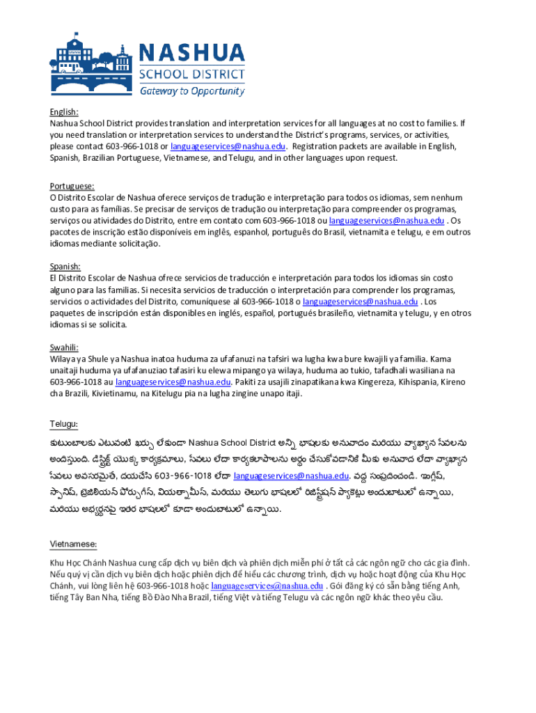 Completing the Nashua School District enrollment form correctly is crucial for ensuring that students can begin their educational journey without delay. Enrollment involves a series of steps that confirm the eligibility of students and their families while also guaranteeing that the school has all necessary information to facilitate enrollment effectively.