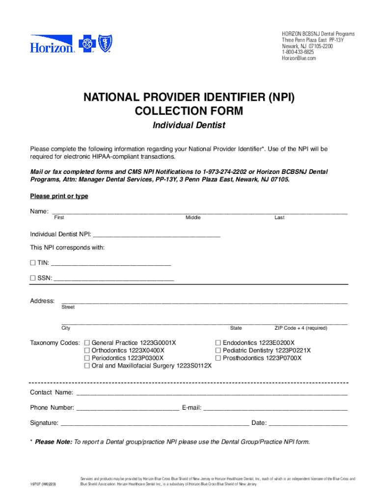 Get the free National Provider Identifier (npi) Collection Form