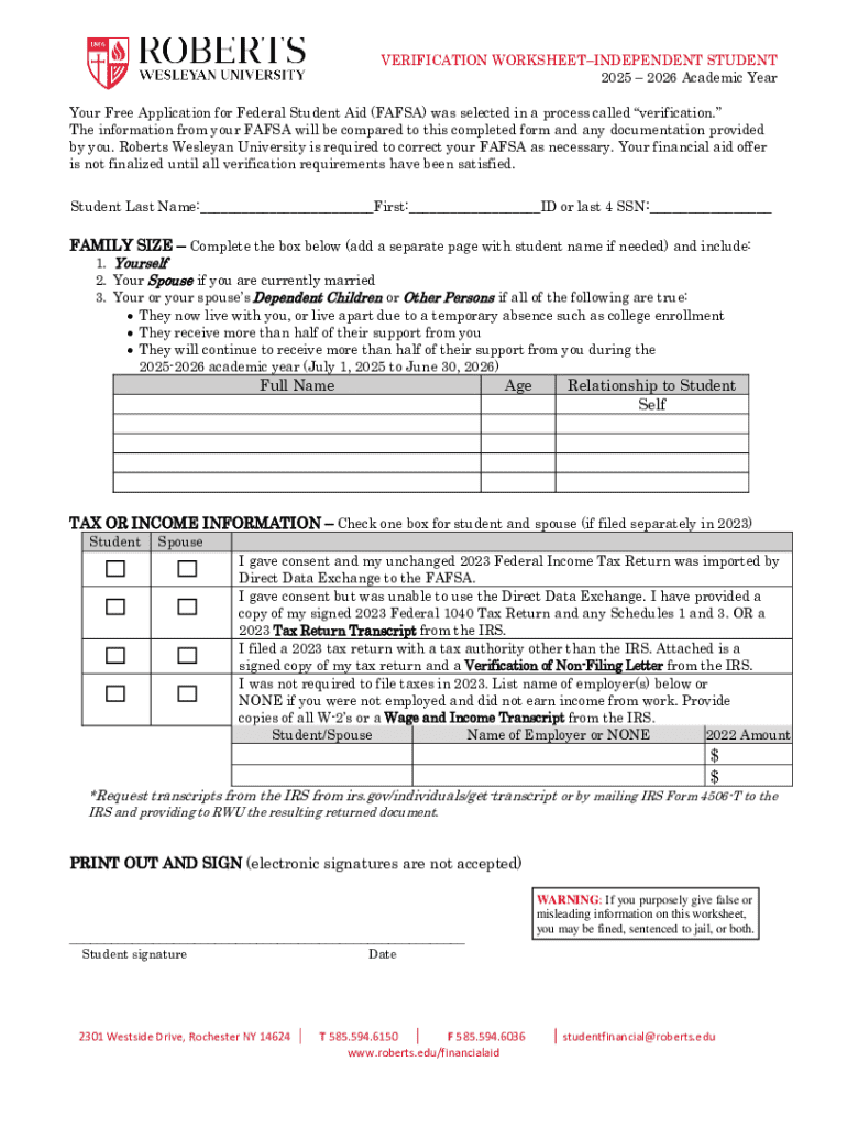 How to fill out verification worksheetindependent student