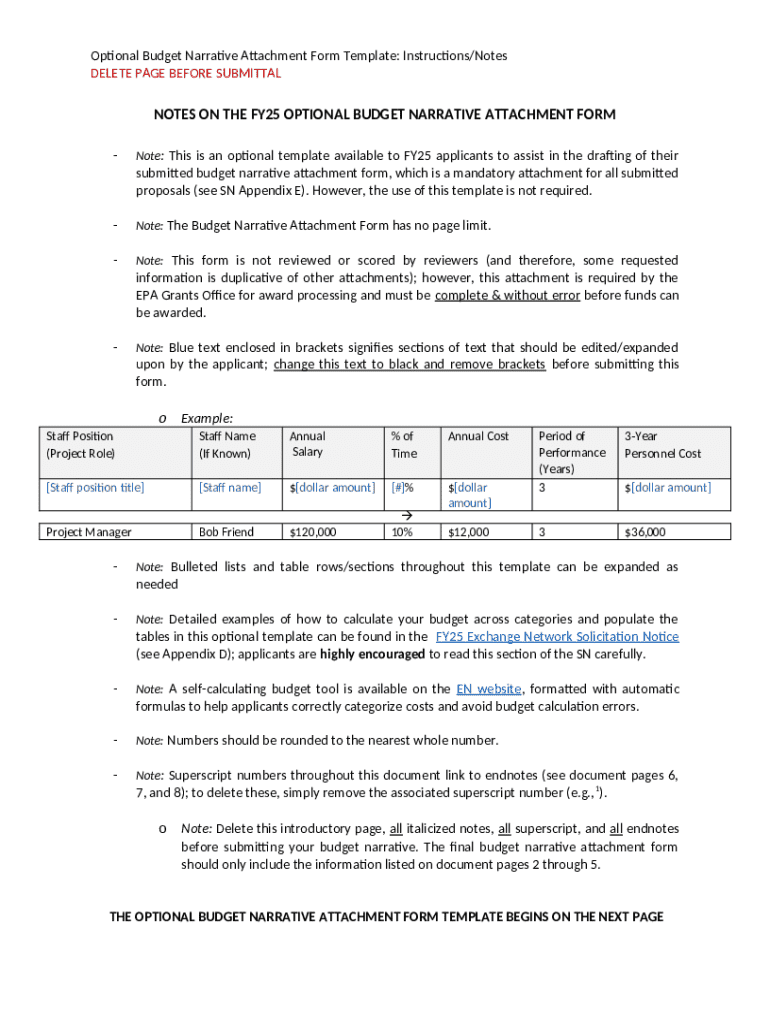 Instructions for the form Notes on the Fy25 Optional Budget Narrative Attachment