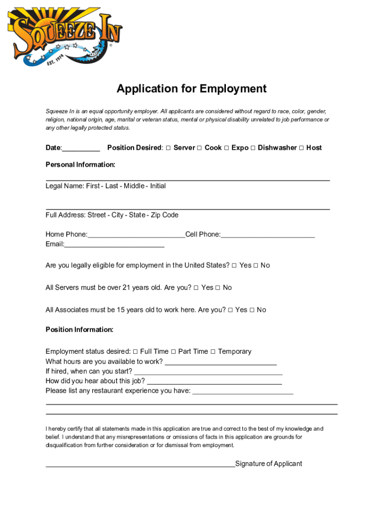 Get the free Application for Employment