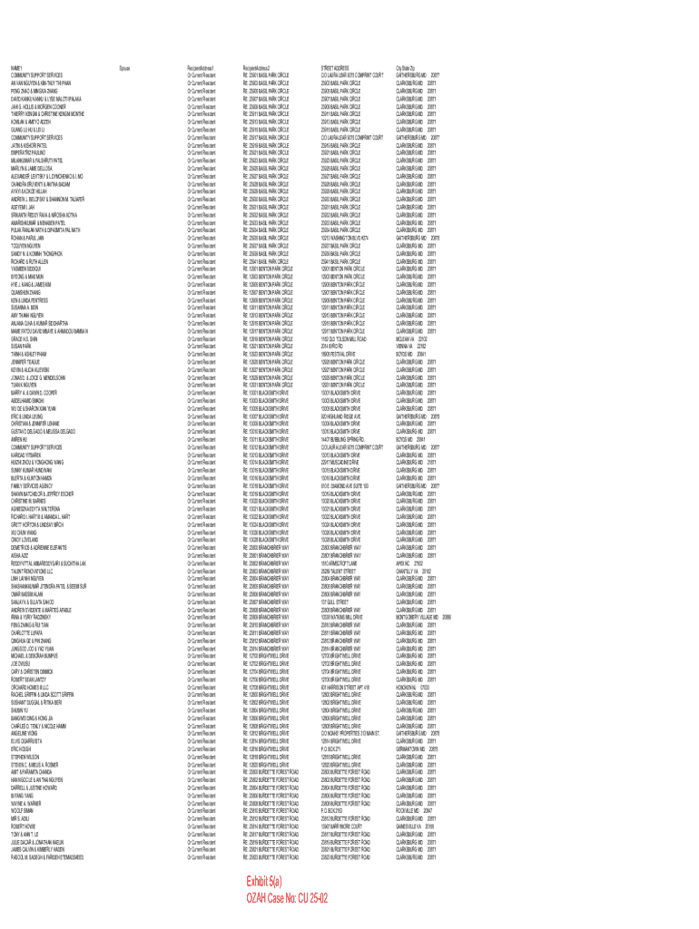 Document listing names and addresses related to community support services, including recipients and their respective addresses.
