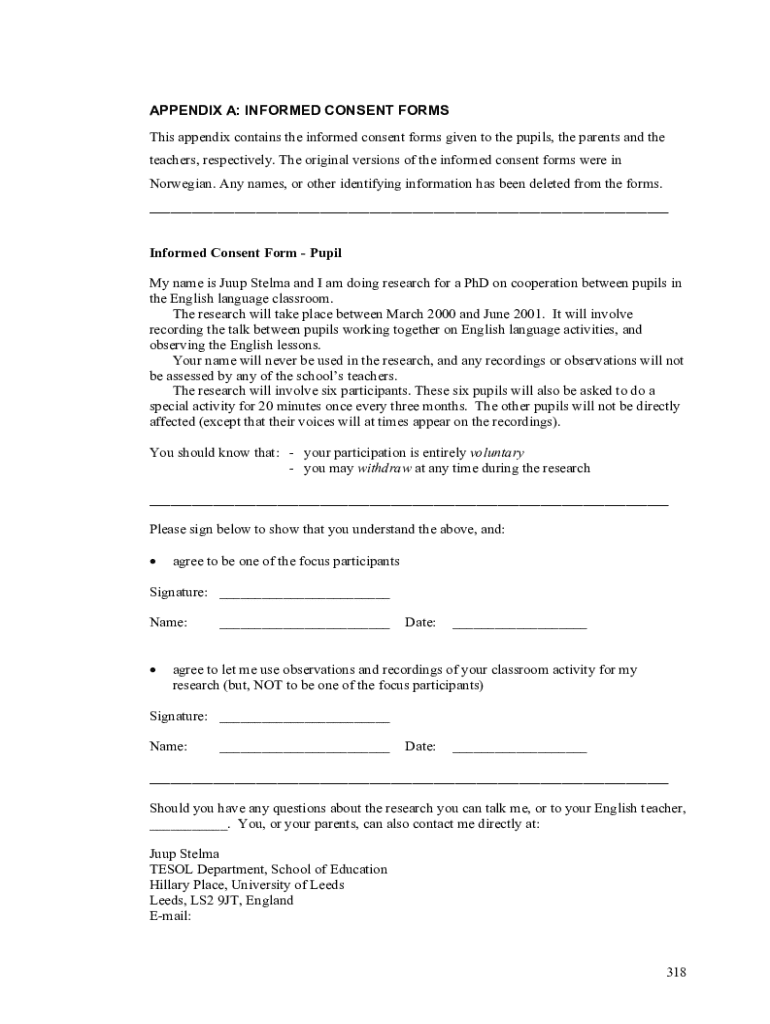 Get the free Appendix a: Informed Consent Forms