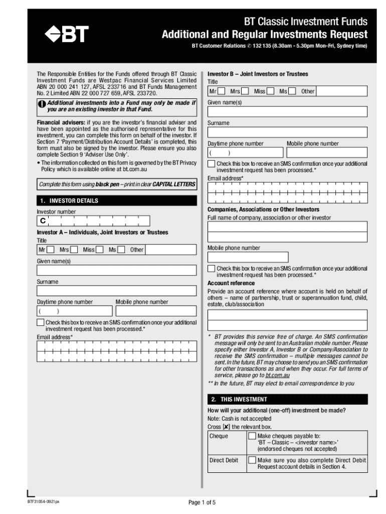 Get the free Bt Classic Investment Funds Additional and Regular Investments Request