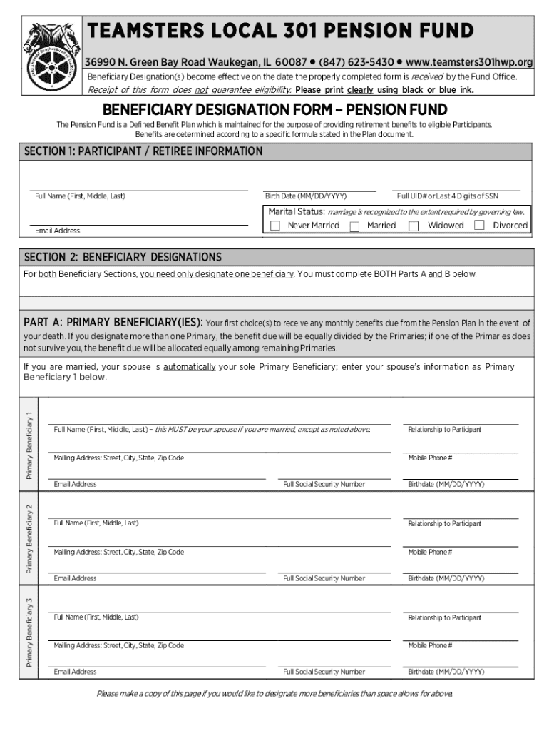 Get the free Beneficiary Designation Form – Pension Fund