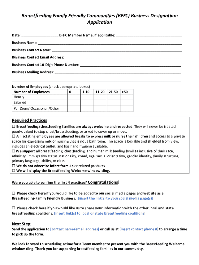 Get the free Breastfeeding Family Friendly Communities (bffc) Business Designation: Application