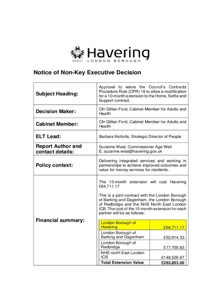 Get the free Notice of Non-key Executive Decision