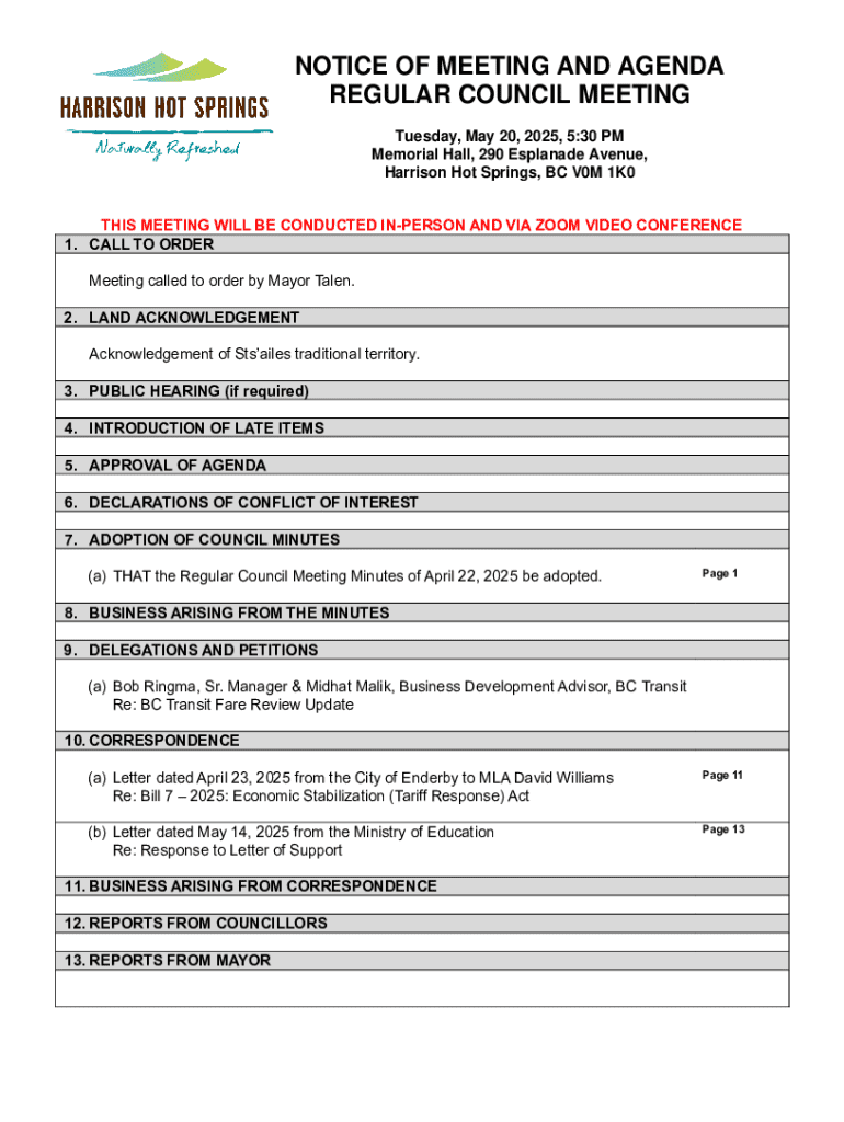 Get the free Notice of Meeting and Agenda