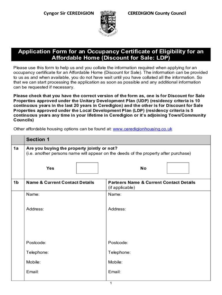 Get the free Application Form for an Occupancy Certificate of Eligibility for an Affordable Home