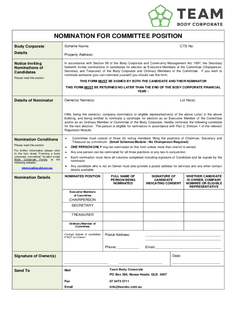 Nomination for Committee Position Form: A Comprehensive Guide