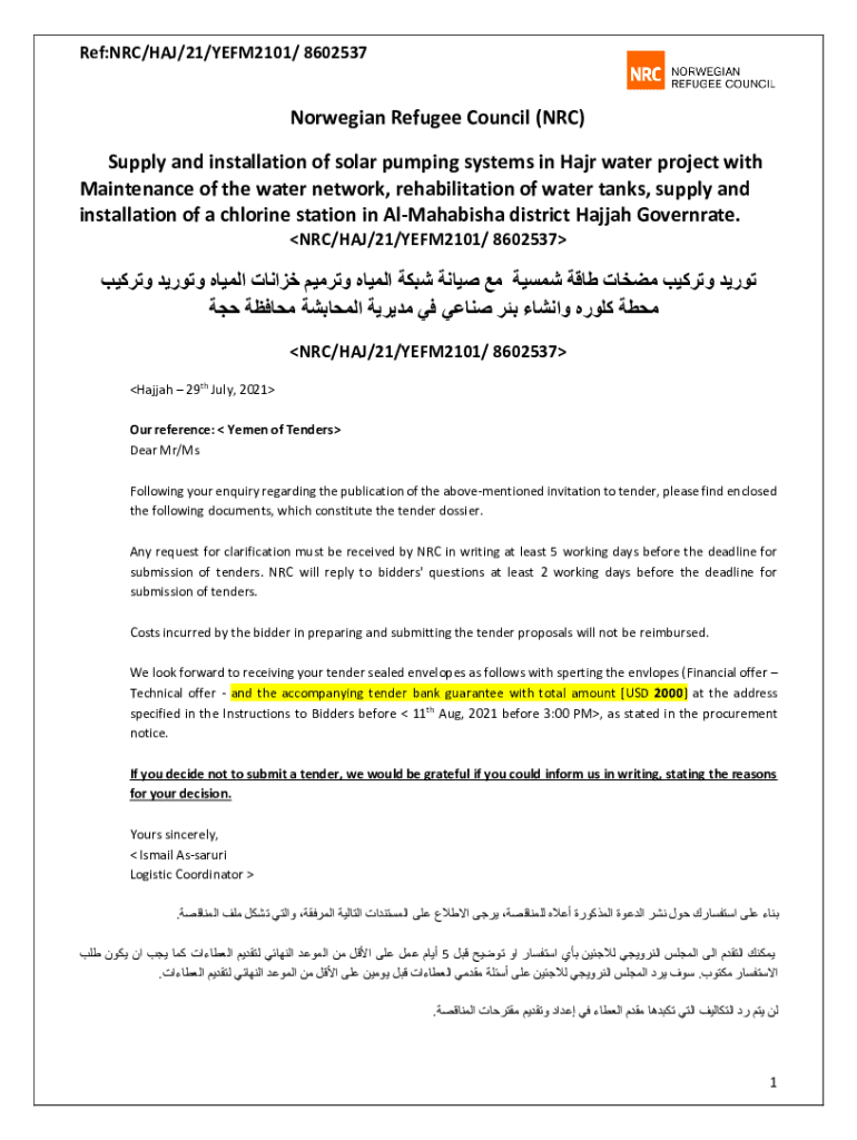 Get the free Norwegian Refugee Council (NRC) Supply and installation of solar ...