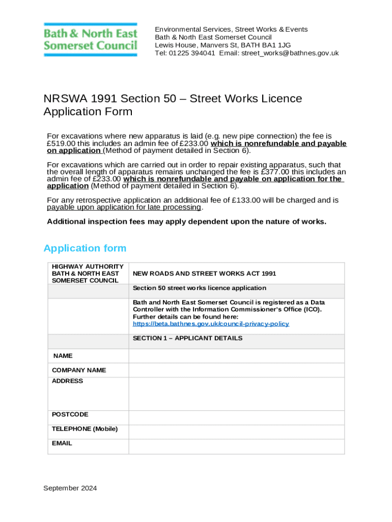 Step-by-step guide to completing the NRSWA 1991 Section 50 form