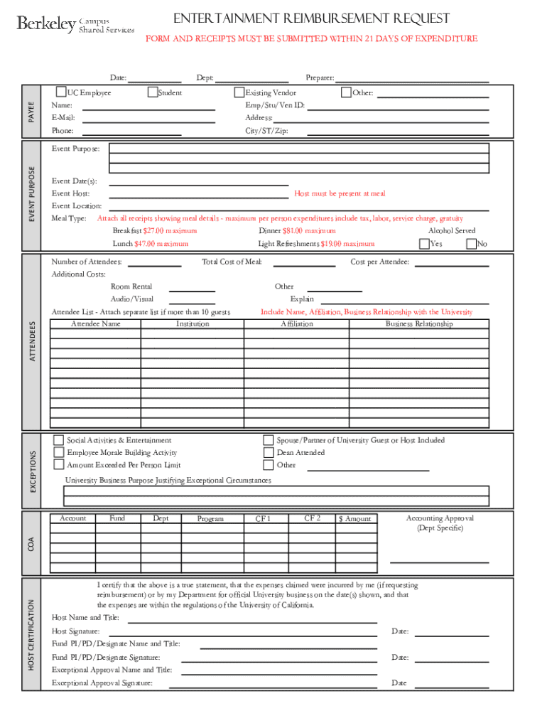 Get the free Entertainment Reimbursement Request