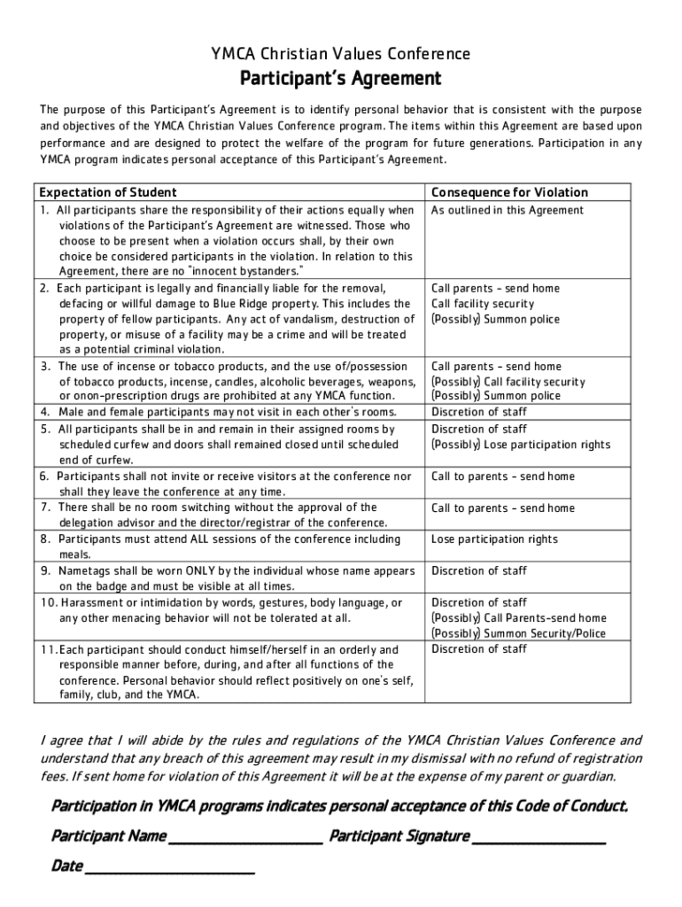 Get the free Ymca Christian Values Conference Participant's Agreement