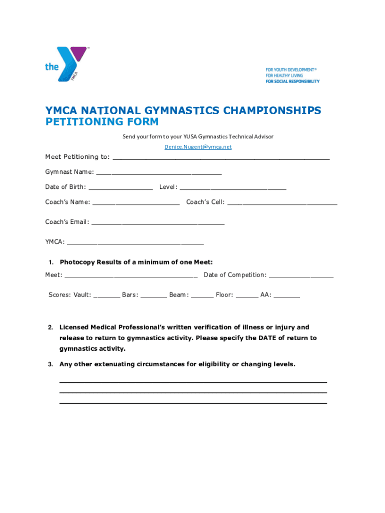 Get the free Ymca National Gymnastics Championships Petitioning Form