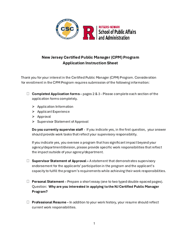 Get the free New Jersey Certified Public Manager (cpm) Program Application Instruction Sheet