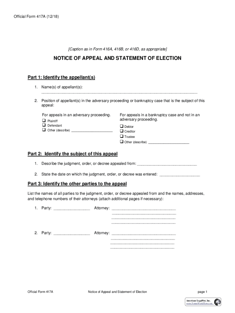 To fill out Official Form 417A, follow the instructions provided with the form, ensuring that you enter all required information accurately and completely.