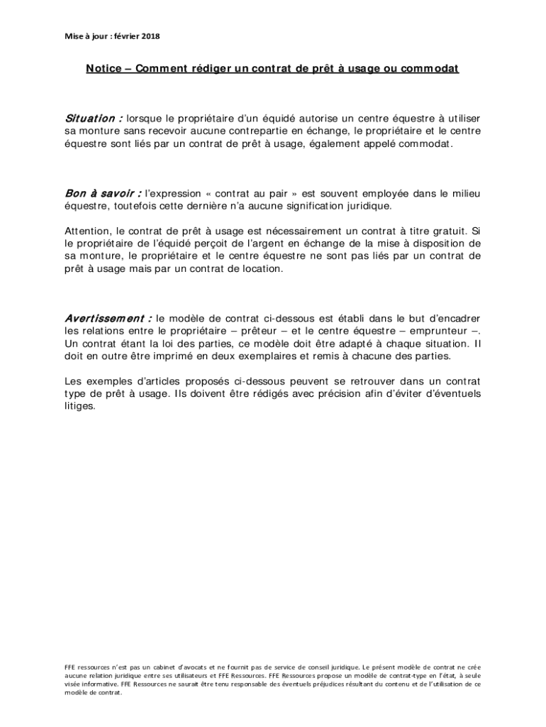 Obtenir le gratuit Notice Comment rdiger un contrat de prt usage ou commodat ...