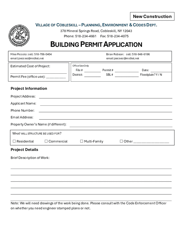 This form typically includes sections for personal information, project details, and required documentation. Personal information sections ask for the property owner's details, while project specifications require information on the nature of the construction, including dimensions and materials used.