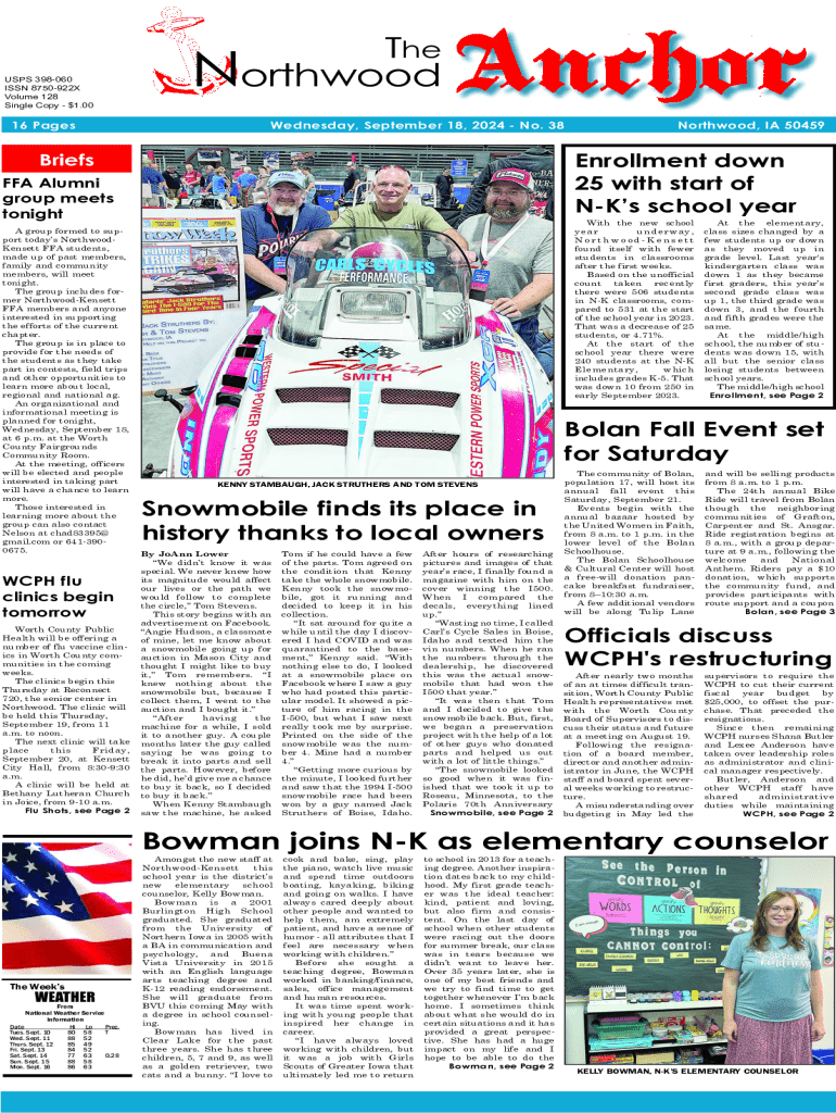 The Northwood Anchor Form consists of several sections, each requiring specific information. Starting with personal information, users need to include their full name, contact details, and possibly a valid PO Box if needed for correspondence in Northwood, IA, 50459. Common mistakes in this section include typos or outdated contact information, which can lead to missed communications.