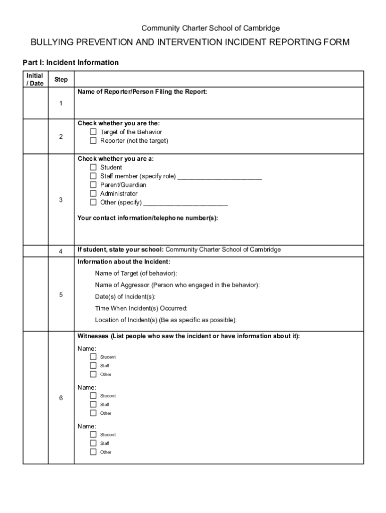 Get the free Bullying Prevention and Intervention Incident Reporting Form