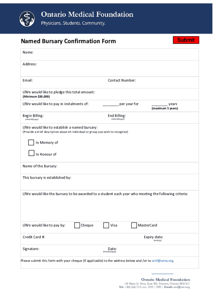 Get the free Named Bursary Confirmation Form