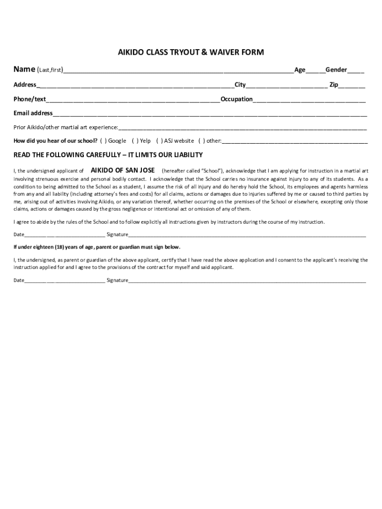 Aikido Class Tryout Waiver Form: Your Comprehensive Guide